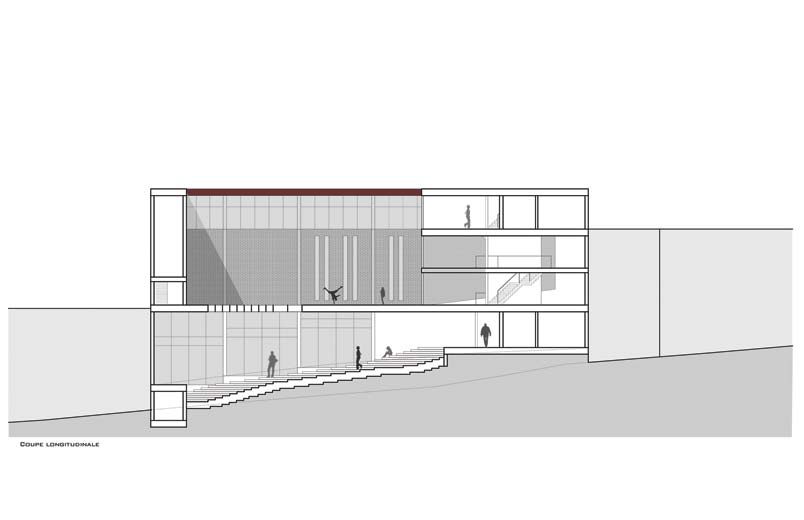 L’intension d’ancrer une école de danse dans cette particulière topographie permet de reprendre l’animation et le mouvement qu’avec jadis le boulevard. L’insertion architecturale reprend l’idée de « la Main » comme lieu de déambulation. La fluidité des passants sur la rue est reprise dans l’architecture du bâtiment, autant au niveau physique que visuel. L’authenticité de cette topographie mérite d’être mise en valeur.