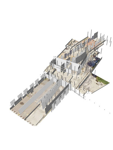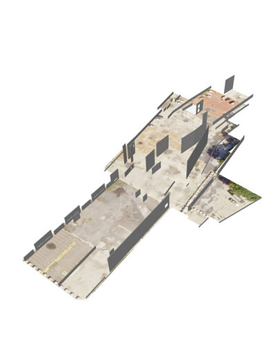 C’est donc à partir des traces, c’est-à-dire de ces quelques bribes déchiffrables à même l’artéfact de la dalle, que le projet s’articule. Il assure ainsi un dialogue ouvert entre passé et futur, il prend position face à la genèse d’un lieu pour en suggérer sa propre synthèse.