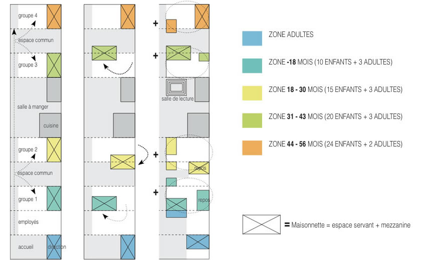 Schéma de la garderie, évolution de l'organisation spatiale