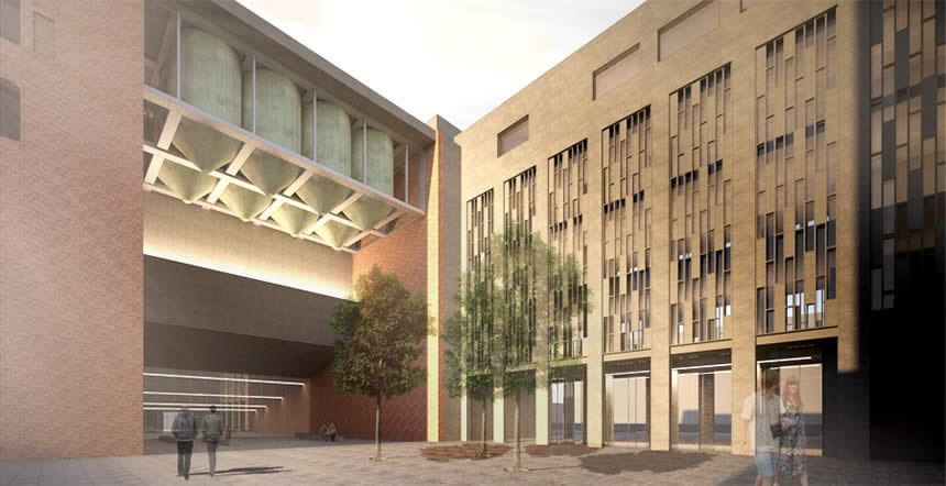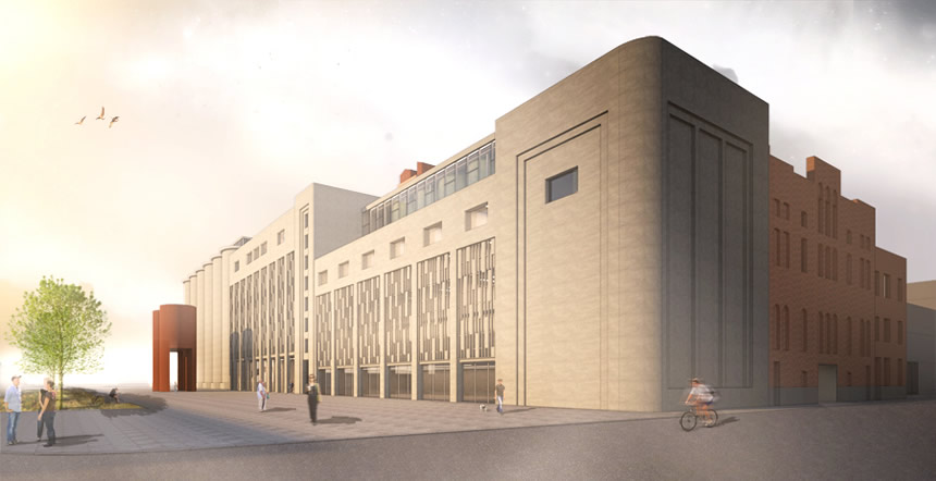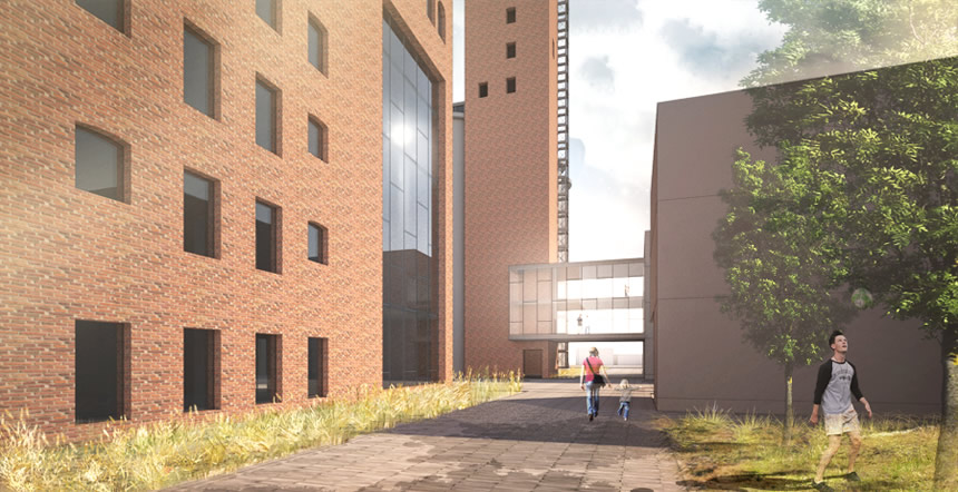 Le passé industriel de l'ancienne malterie est évoqué d'une part par la mise en valeur des artéfacts dans les espaces publics, et de l'autre, par la mise en valeur des silos. La volumétrie singulière et la monumentalité de ces derniers sont appréciables par des dégagements importants en périphérie. À leur base, une plantation d'orge, matière produisant le malt, fait un clin d'œil à la vocation d'origine de la Canada Malting.